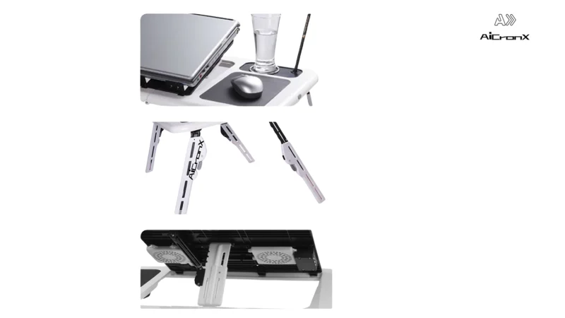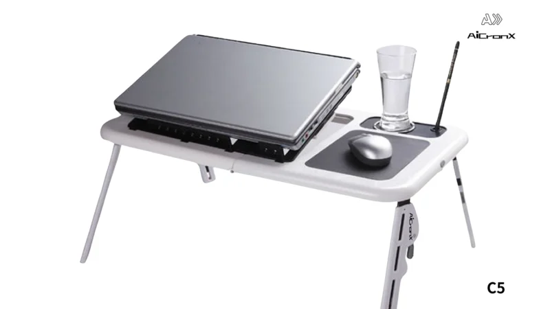 Foldable, adjustable, portable, cup holder, pen holder, cooling fan, mouse pad
